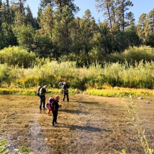 Over an extended weekend in early October, New Mexico Wild joined Heart of the Gila and Gila Backcountry Outfitters to lead volunteers on a stewardship project in the Gila Wilderness. The goal of the project was to maintain a section of Gila River Trail No. 724 by cutting through thickets, redefining tread and clearing sections of overgrown trail corridor.