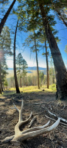 I was climbing up a long and steep hill in the Valles Caldera backcountry when I stumbled upon this beautiful elk antler. Tired and thirsty from the long climb, I sat down to gaze upon the antler. Towering Douglas fir trees outlined the distant view of the Valle Grande and the whole setting was profoundly spiritual to me.
