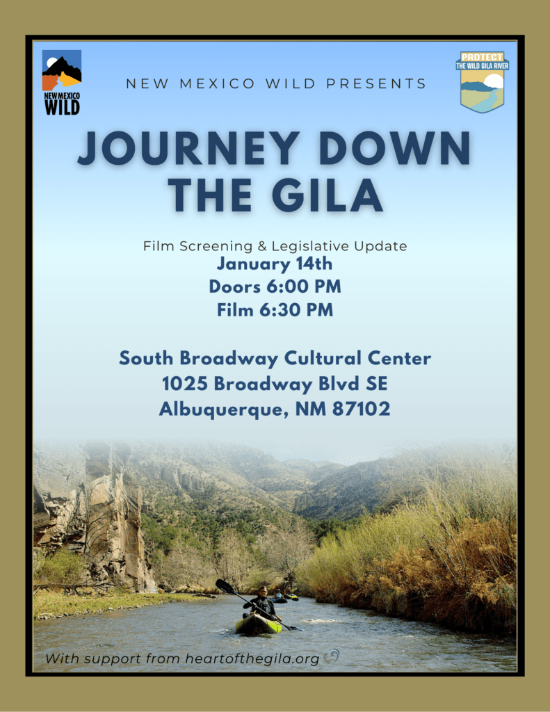 Join us for a special screening of Journey Down the Gila, a stunning and heartfelt film by Albuquerque filmmaker David Garcia that captures both the beauty of the Gila River and the powerful story of three New Mexico teens who lost their lives in service to the wild. The film follows their mothers’ emotional voyage down the river — and the ongoing effort to keep the Gila free-flowing and untamed.