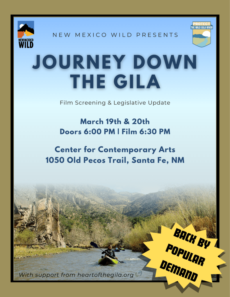 Join us for a special screening of Journey Down the Gila, a stunning and heartfelt film by Albuquerque filmmaker David Garcia that captures both the beauty of the Gila River and the powerful story of three New Mexico teens who lost their lives in service to the wild. The film follows their mothers’ emotional voyage down the river — and the ongoing effort to keep the Gila free-flowing and untamed.