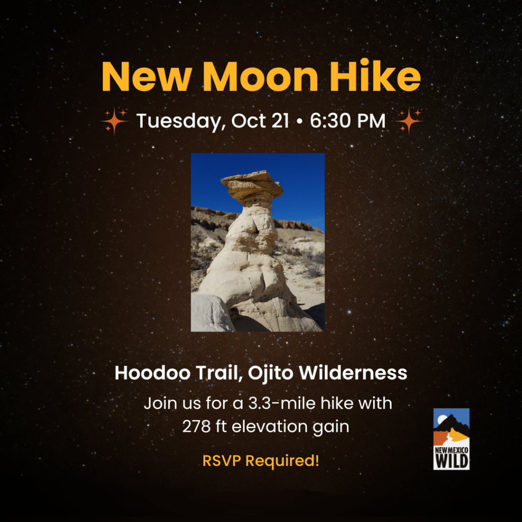 Join New Mexico Wild for a new moon hike and a little bit of star gazing on the Hoodoo Trail in the Ojito Wilderness.