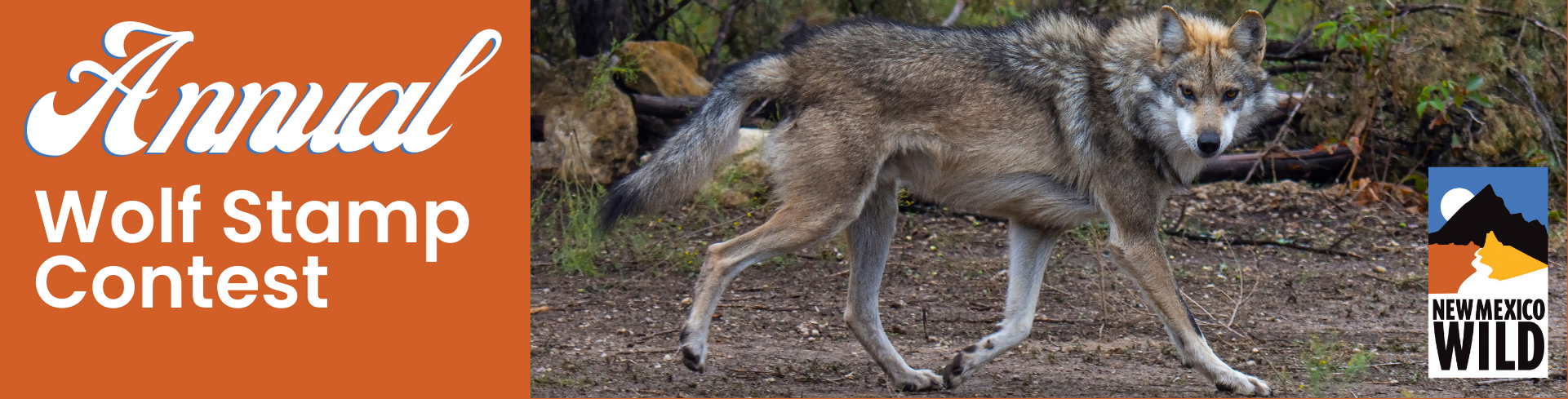 New Mexico Wild invites artists of all ages, backgrounds, and skill levels to submit original artwork for our 2026 Mexican Gray Wolf Conservation Stamp Contest. All two-dimensional drawings, paintings, or photographs featuring the Mexican gray wolf are welcome. The winning artwork from the adult category will be printed on the collectable 2026 Mexican Wolf Conservation Stamp, which will be sold to support Mexican gray wolf conservation and education programs. View our 2025 winner here!